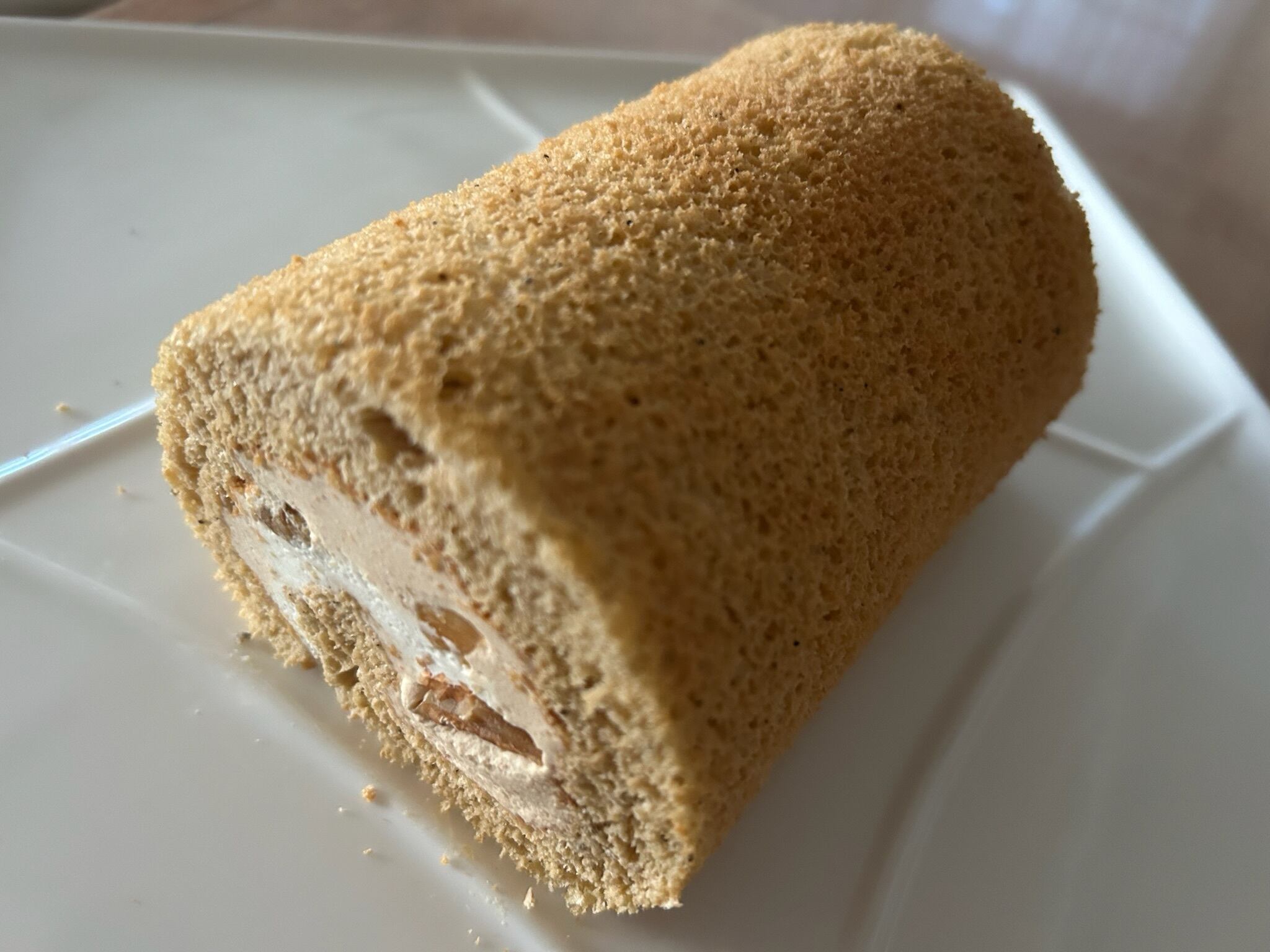 香ばしいクルミとキャラメルクリームを、コーヒー風味のロール生地で巻きました。
